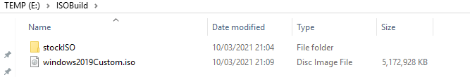 The first step is to mount the ISO and copy all of the files to a temporary location. This can easily be achieved with PowerShell’s Mount-Image and Copy-Item CMDlets, but for demonstration purposes this has been hand cranked: